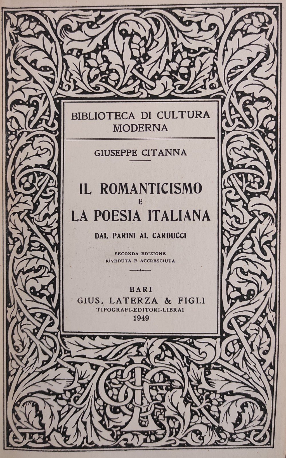 IL ROMANTICISMO E LA POESIA ITALIANA. DAL PARINI AL CARDUCCI