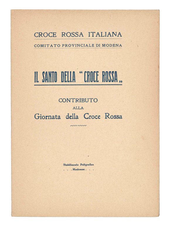 Il santo della "Croce Rossa". Contributo alla Giorata della Croce Rossa. | Rare and modern books | CROCE ROSSA ITALIANA