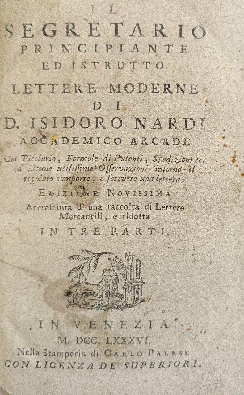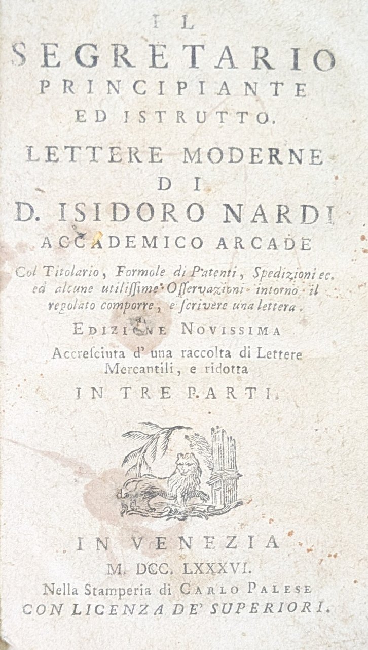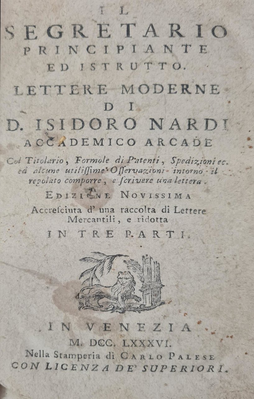 IL SEGRETARIO PRINCIPIANTE ED ISTRUTTO. LETTERE MODERNE DI D. ISIDORO NARDI