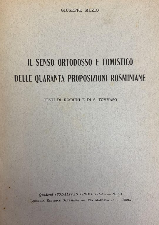 IL SENSO ORTODOSSO E TOMISTICO DELLE QUARANTA PROPOSIZIONI ROSMINIANE
