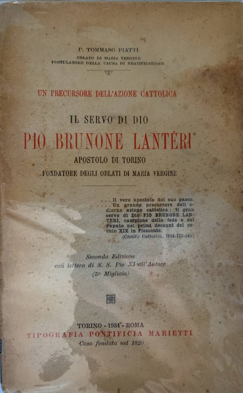 Il Servo di Dio Pio Brunone Lanteri, apostolo di Torino, fondatore degli Oblati di Maria Vergine
