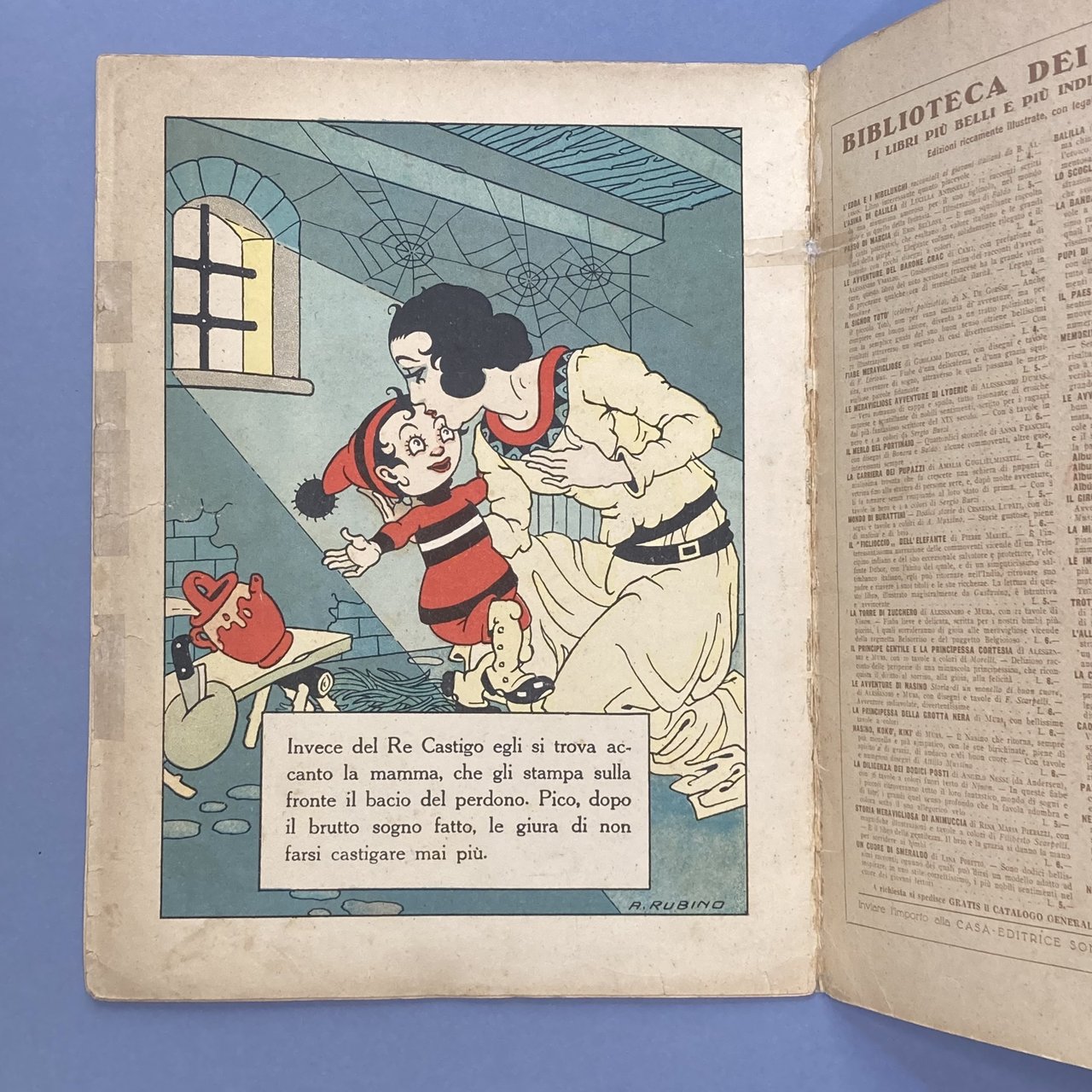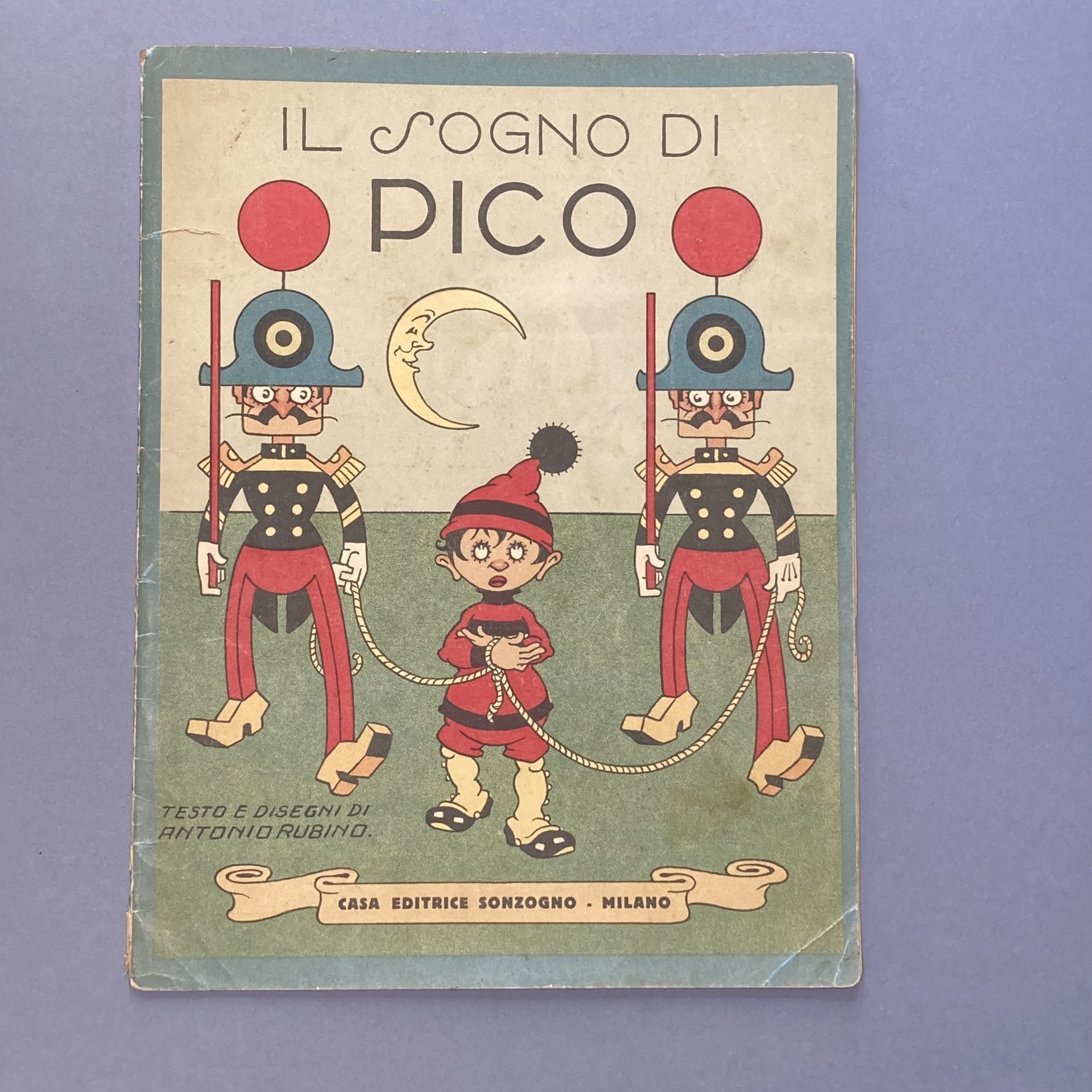 4°, cm 30, pp. 12, brossura editoriale spillata con illustrazioni a colori ai piatti. Contiene dodici disegni a colori di Rubino. Terza edizione identica alla prima del 1922. Esemplare buono. Qualche segno d'uso al dorso e agli angoli. Restauri al margine esterno dell'ultima pagina e ai margini interni.. *** TUTTI I NOSTRI LIBRI SONO VISIBILI PREVIO CONTATTO MAIL O TELEFONO NELLA NUOVA SEDE DI MILANO: LIBRERIA COSMOPOLIS, VIA JOMMELLI, 22. ***