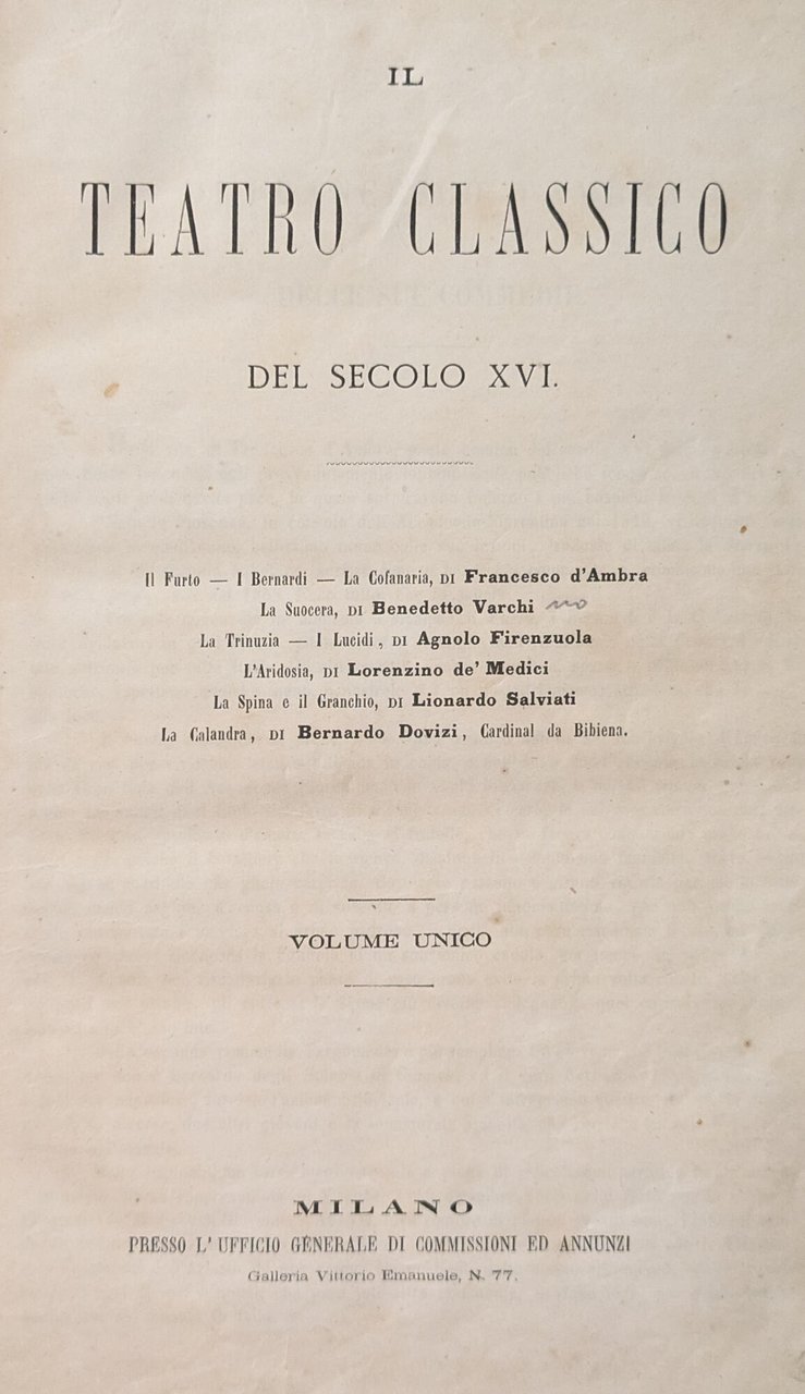 IL TEATRO CLASSICO DEL SECOLO XVI