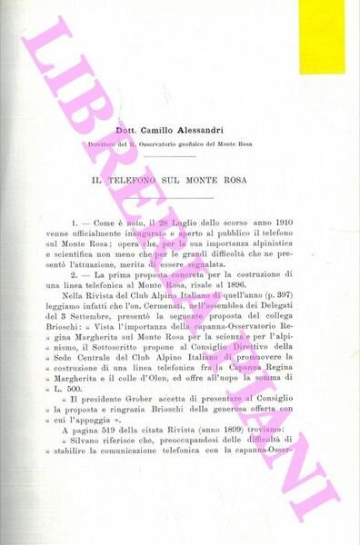 Milano, 1911, 8vo stralcio con copertina posticcia muta, pp. 161/172 con 4 illustrazioni fotografiche. - ! ATTENZIONE !: Con il termine estratto (o stralcio) intendiamo riferirci ad un fascicolo contenente un articolo, completo in se, sia che esso sia stato stampato a parte utilizzando la stessa composizione sia che provenga direttamente da una rivista. Le pagine sono indicate come "da/a", ad esempio: 229/231 significa che il testo è composto da tre pagine. Quando la rivista di provenienza non viene indicata é perché ci è sconosciuta. - ! ATTENTION !: : NOT A BOOK : “extract” or “excerpt” means simply a few pages, original nonetheless, printed in a magazine. Pages are indicated as in "from” “to", for example: 229/231 means the text comprises three pages (229, 230 and 231). If the magazine that contained the pages is not mentioned, it is because it is unknown to us.