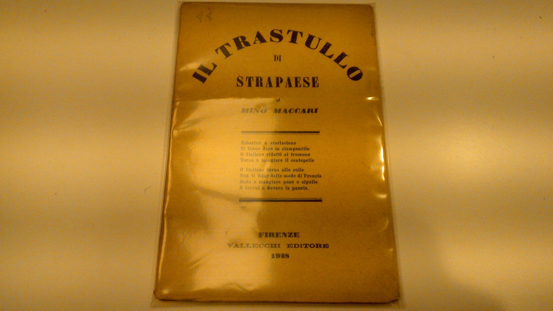 Raccolta di canzoncine di Mino Maccari, illustrate con incisioni su legno dallo stesso artista. Conservata l'errata corrige. Prima edizione.