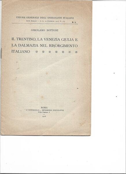 Il Trentino. la Venezia Giulia. la Dalmazia nel Risorgimento italiano.