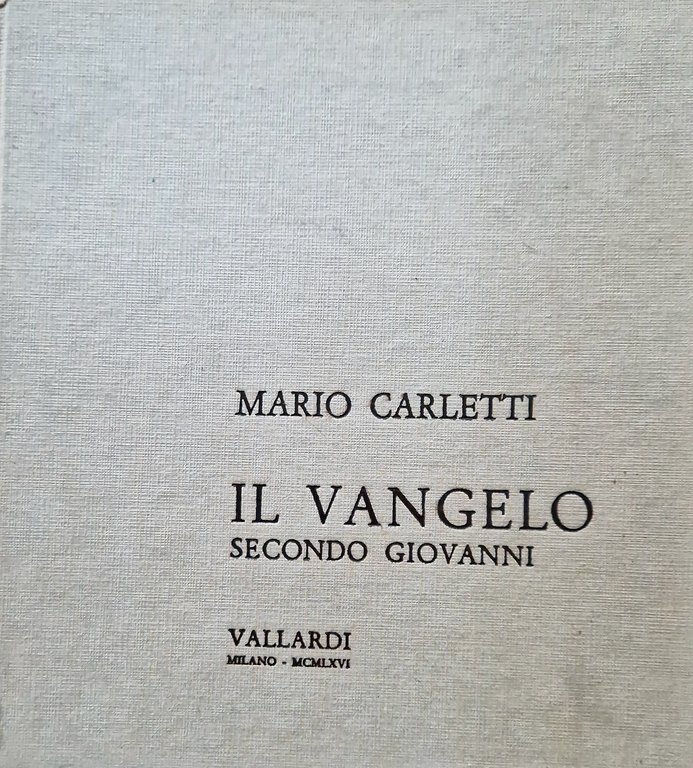 Il Vangelo secondo Giovanni. Testi di G.Vallardi, Mario Carletti e Luigi Carluccio.