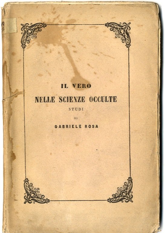 >In-8, pp. 90, brochure originale a stampa (un po' usurata). L'autore illustra come: "...la storia delle cosiddette scienze "vere" quali l'algebra, la chimica, l'astronomia e la medicina non possa prescindere dallo studio dello spirito delle corrispondenti scienze occulte, che con loro rimasero incorporate in parte sino al 1600". Una macchia al piatto anteriore, qualche ingiallitura della carta. Nell'insieme ottimo e non comune.
