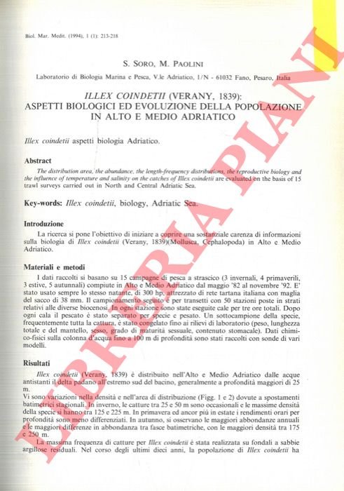 Illex coindetii (Verany, 1839): aspetti biologici ed evoluzione della popolazione in alto e medio Adriatico.