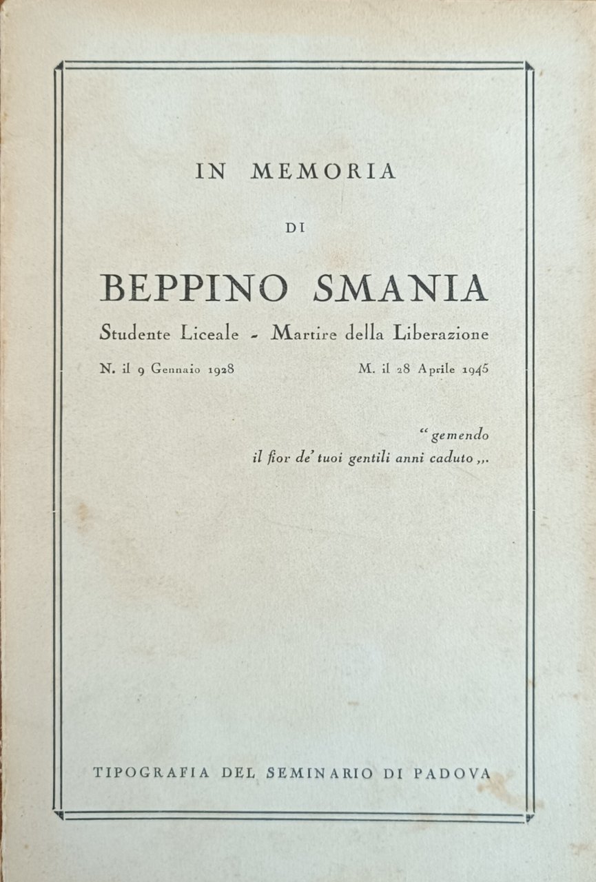 IN MEMORIA DI BEPPINO SMANIA. STUDENTE LICEALE - MARTIRE DELLA LIBERAZIONE