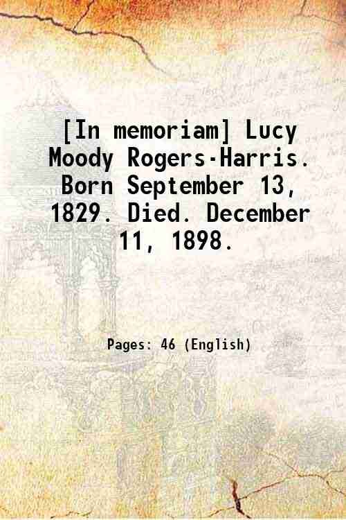 [In memoriam] Lucy Moody Rogers-Harris. Born September 13, 1829. Died. December 11, 1898. 1899