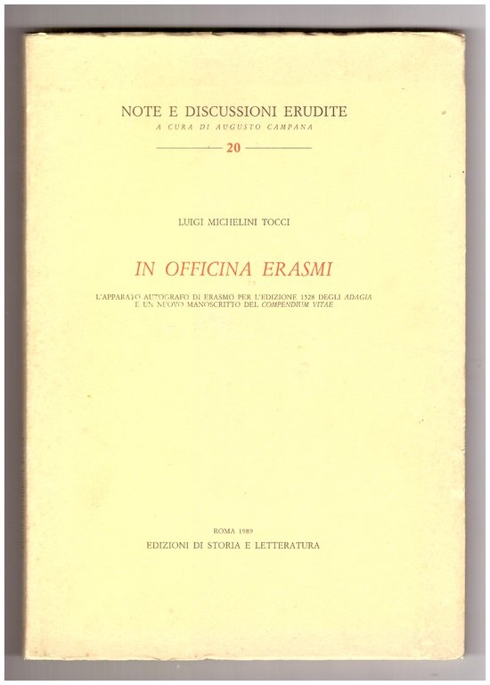 IN OFFICINA ERASMI. L'apparato autografo di Erasmo per l'edizione 1528 degli Adagia e un nuovo manoscritto del Compendium vitae.