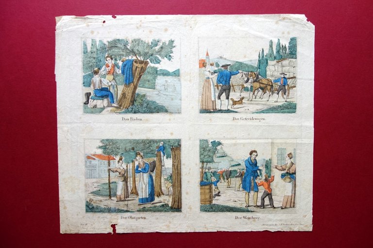 Incisione Popolare Scene di Vita Agreste Campagna Primo Ottocento