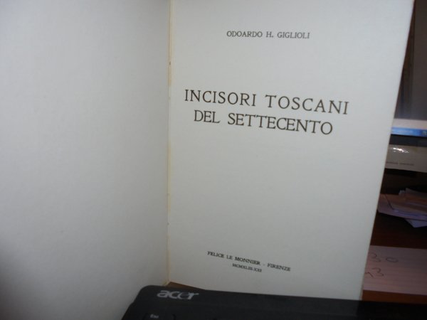 Odoardo H. Giglioli. Firenze, Felice Le Monnier, 1943. Incisori Toscani del Settecento. (Catalogo). In-8° piccolo, cartoncino edit. 57, (1) pp. con 48 figure fuori testo. In ottimo stato di conservazione. Uff. A - II - 3 - 2