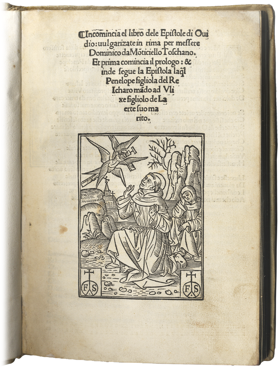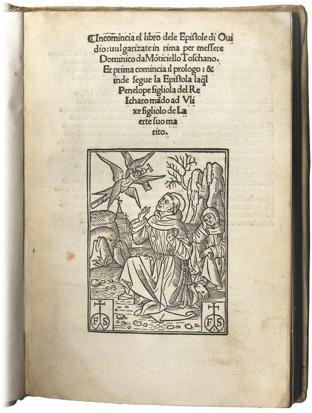 Incomincia el libro dele epistole di Ovidio vulgarizzate in rima per messere Dominico da Monticello toschano. Et prima comincia il prologo: et inde segue la epistola laqual Penelope figliola del re Icharo mando ad Vlixe figliolo de Laerte suo marito.