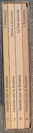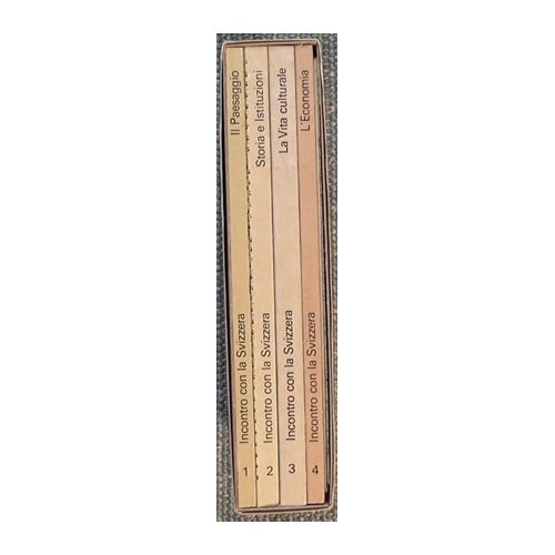cm 21 x 21 - pp.120 + 154 + 176 + 118 - Brossura editoriale illustrata - 4 vol. raccolti in un cofanetto - moltissime illustrazioni nel testo - Ai 4 volumi è allegata una brossura con la Svizzera in cifre + carta stadale + presentazione dell'opera. Ottimo stato di conservazione - Essenziale per conoscere meglio la Svizzera attraverso immagini, testi e storia.