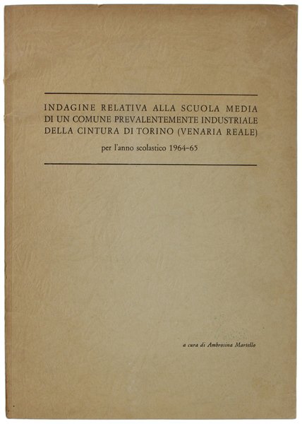 INDAGINE RELATIVA ALLA SCUOLA MEDIA DI UN COMUNE PREVALENTEMENTE INDUSTRIALE DELLA CINTURA DI TORINO (VENARIA REALE) per l'anno scolastico 1964-65.