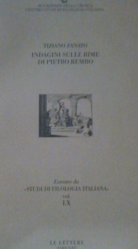 INDAGINE SULLE RIME DI PIETRO BEMBO - ESTRATTO DA "STUDI DI FILOLOGIA ITALIANA, VOL.LX