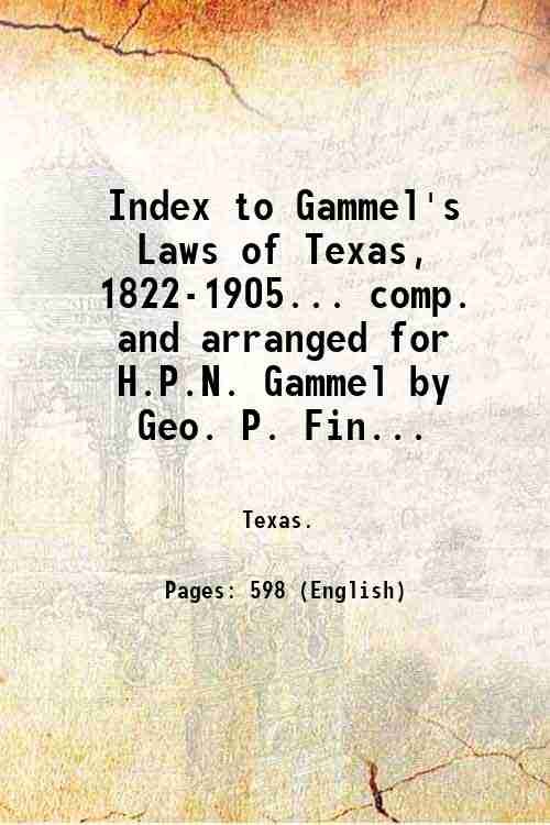 Index to Gammel's Laws of Texas, 1822-1905. comp. and arranged for H.P.N. Gammel by Geo. P. Finlay and D.E. Simmons. 1906