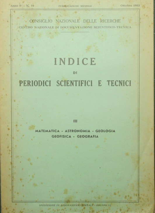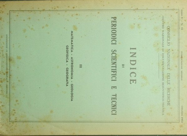 Indice di periodici scientifici e tecnici. Vol. III: Matematica. Astronomia. Geologia. Geofisica. Geografia | Rare and modern books | Consiglio Nazionale Delle Ricerche