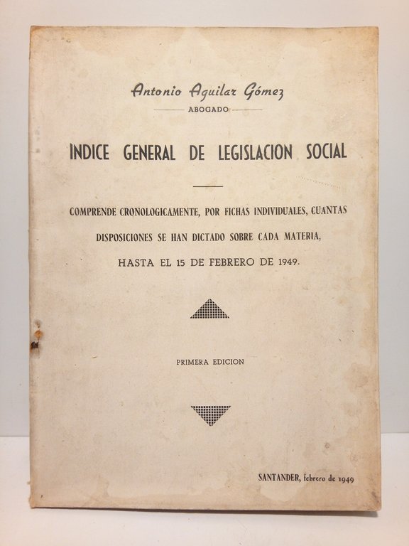 Indice General de Legislación Social. Comprende cronológicamente, por fichas individuales, cuantas disposiciones se han dictado sobre cada materia