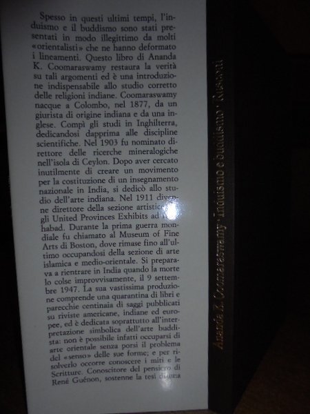 Ananda K. Coomaraswamy. Milano, Rusconi Editore, 1987. Induismo e Buddismo. In-8°, tela marrone edit. con titoli in oro sul dorso e sovracopertina. 120, (2) pp. Libro come nuovo o nuovo. Neg. mob. 16
