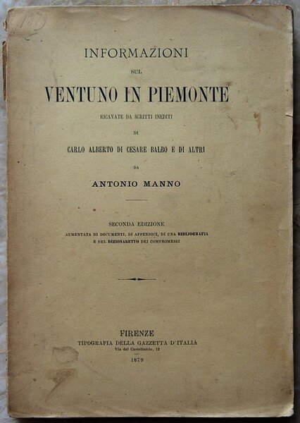 INFORMAZIONI SUL VENTUNO IN PIEMONTE. RICAVATE DA SCRITTI INEDITI DI CARLO ALBERTO DI CESARE BALBO E ALTRI.