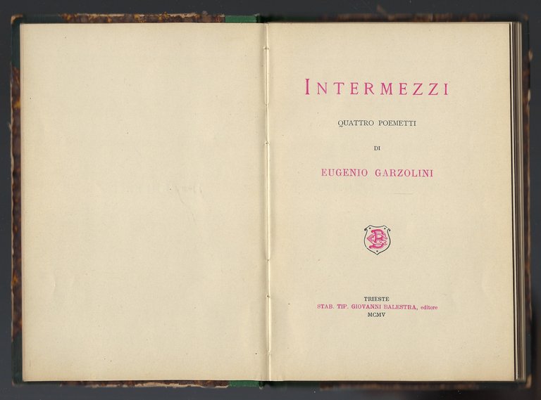 Legatura editoriale rigida in tela verde al dorso e agli angoli del piatto marmorizzato. Presenta alcuni segni d'usura ed abrasioni perlopiù marginali.