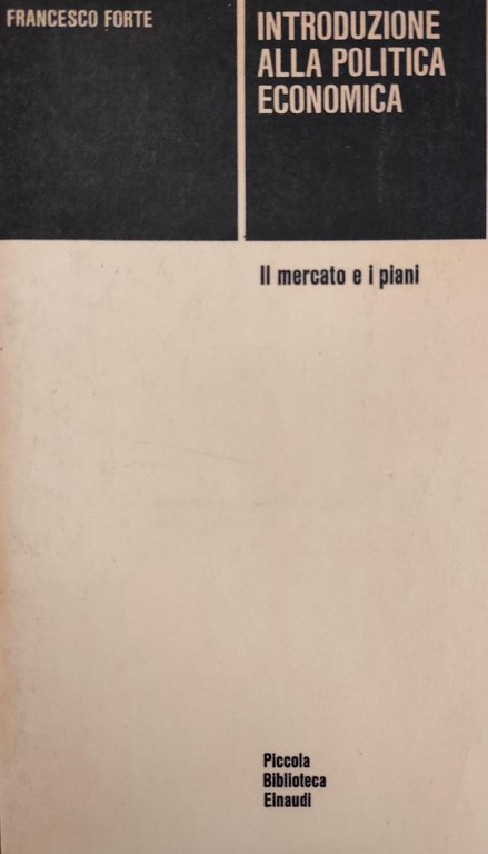 INTRODUZIONE ALLA POLITICA ECONOMICA. IL MERCATO E I PIANI