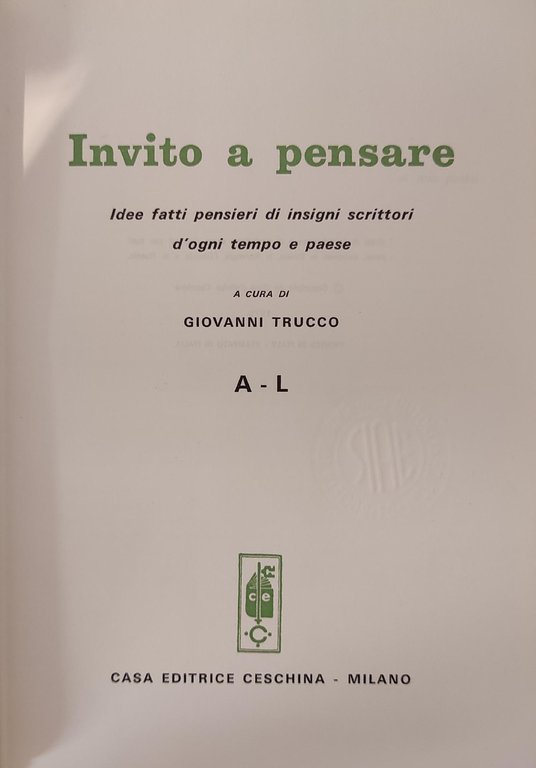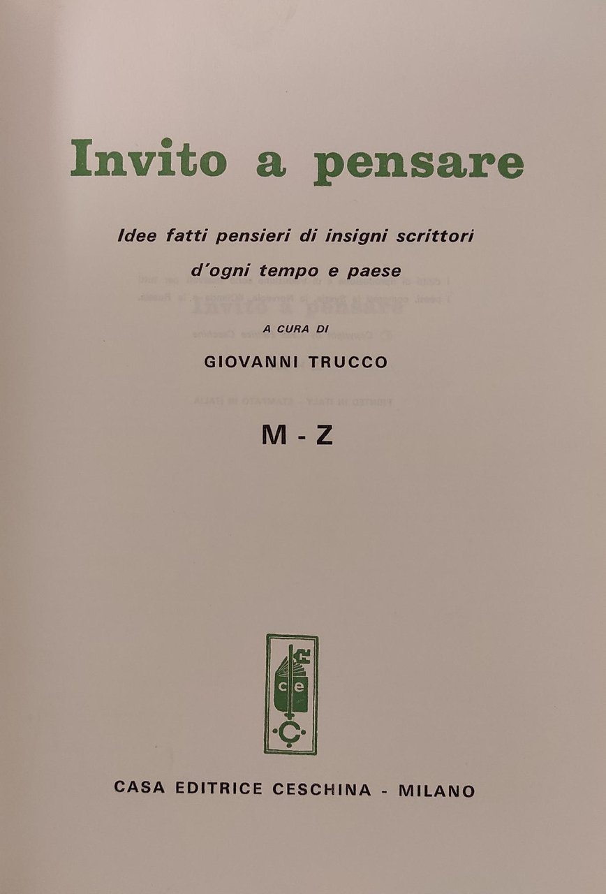 INVITO A PENSARE. IDEE, FATTI, PENSIERI DI INSEGNI SCRITTORI D'OGNI TEMPO E PAESE