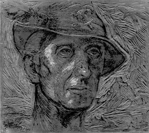 Legno originale per xilografia, inciso su due lati, di cm. 17 x 19. Firma in basso.