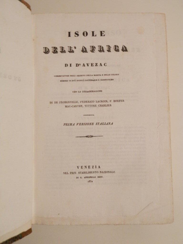 Isole dell'Africa di D'Avezac ; con la collaborazione di De Froberville. Prima edizione italiana
