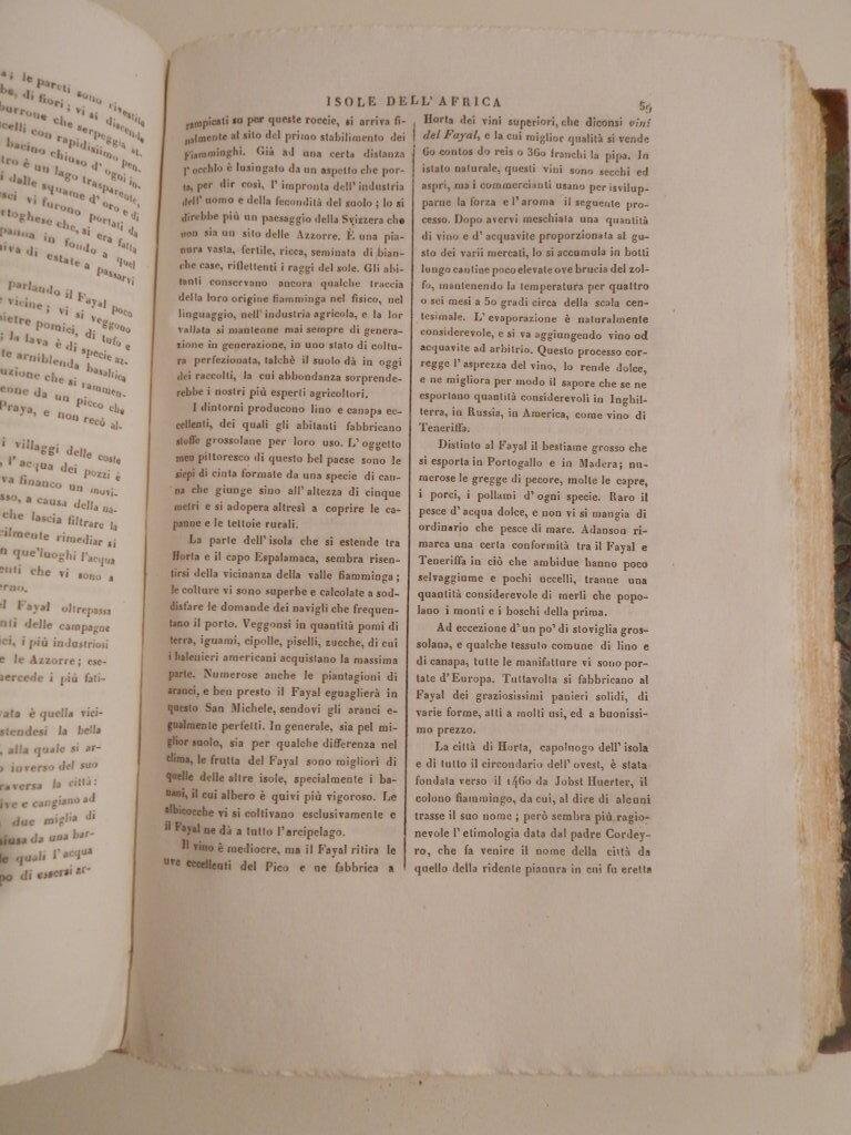 8°, 23 cm, pp. 131; 191; 272; IV, 182; complessivamente 57 tavole incise fuori testo, testo su due colonne, rilegatura coeva in mezza pelle, titolo in oro su tassello al dorso, piatti marmorizzati. Fa parte di: L'Universo o storia e descrizione di tutti i popoli ec, loro religioni, costumi, usanze, ec. Mancanza al dorso, esemplare per il resto molto buono. Collaborazione di Froberville, Lacroix, Hoefer, Mac-Carthy, Charlier, descritte anche Malta e Il Gozzo; le isole sono divise per mari: Mediterraneo, Oceano Atlantico e Oceano Indiano. *** TUTTI I NOSTRI LIBRI SONO VISIBILI PREVIO CONTATTO MAIL O TELEFONO NELLA NUOVA SEDE DI MILANO: LIBRERIA COSMOPOLIS, VIA JOMMELLI, 22. ***