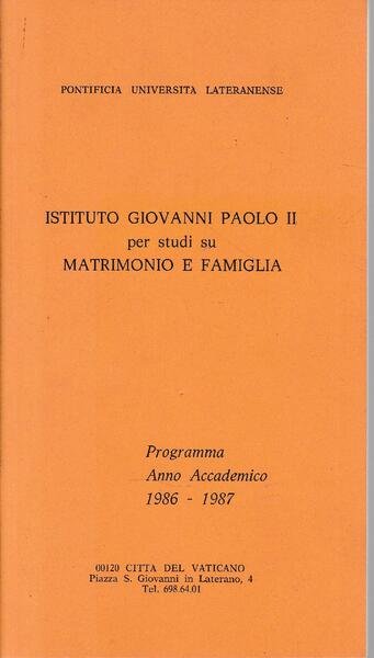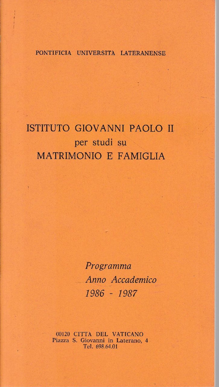 Istituto Giovanni Paolo II per studi su Matrimonio e Famiglia. Programma Anno Accademico 1986-1987