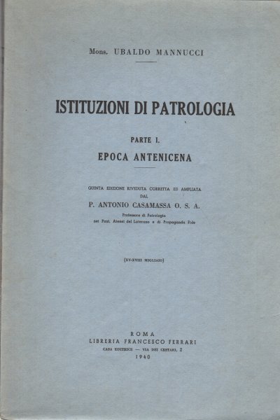Istituzioni di patrologia, parte I. Epoca antenicena | Rare and modern books | Ubaldo Mannucci
