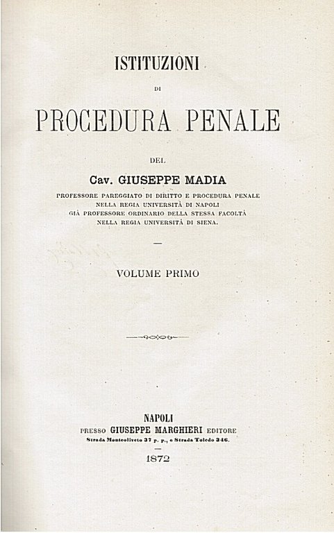 Istituzioni di procedura penale. Volume primo - Volume secondo.