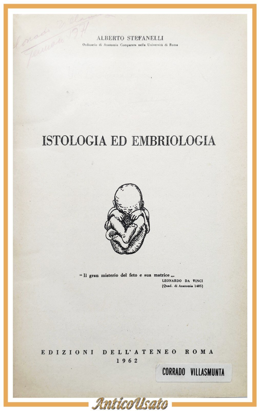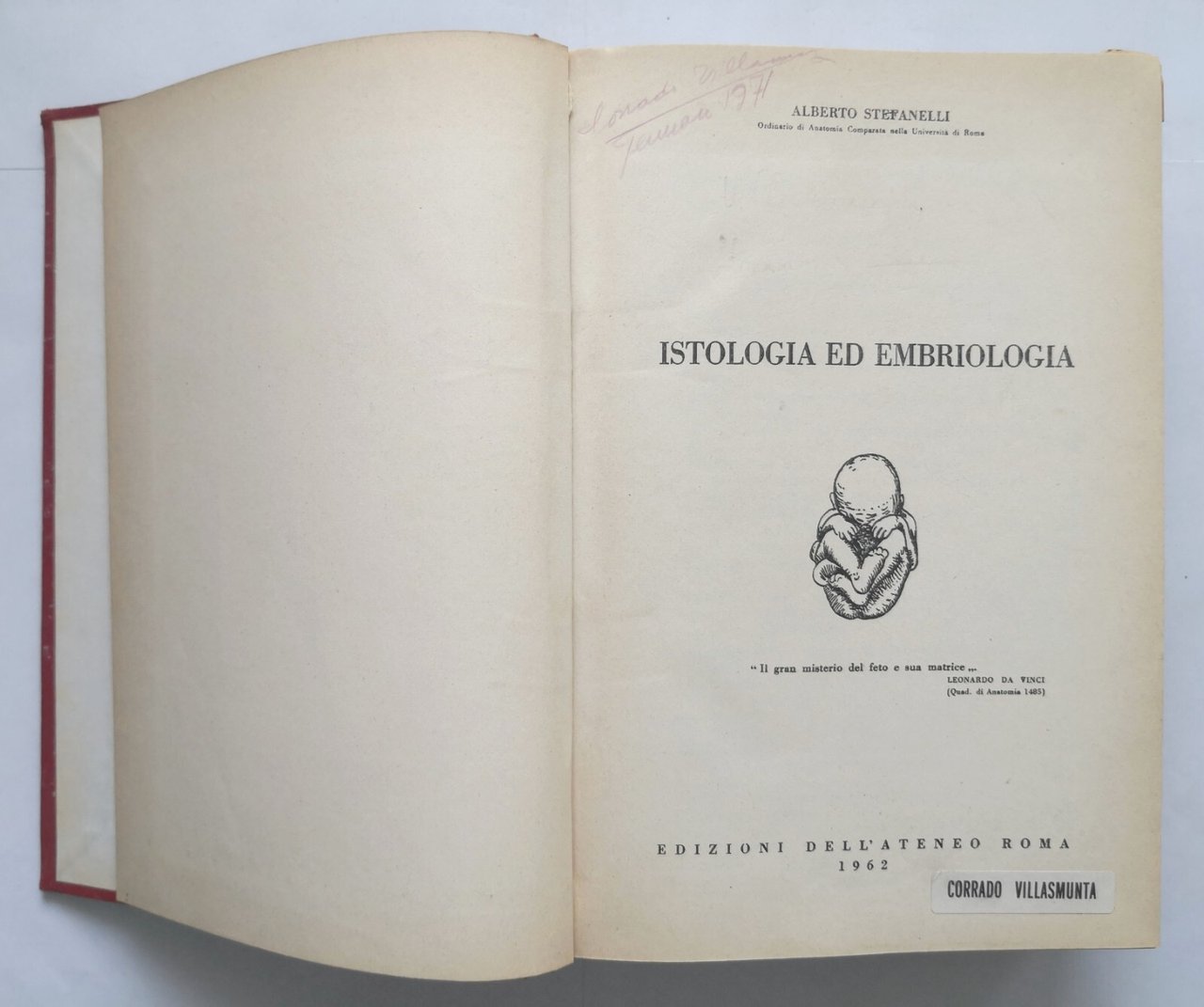 ISTOLOGIA ED EMBRIOLOGIA di Alberto Stefanelli 1962 Edizioni dell'Ateneo Libro