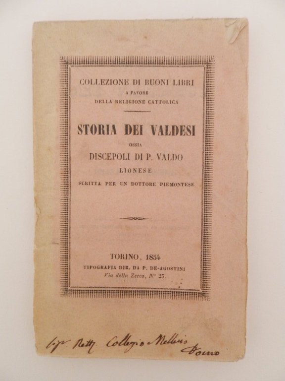 Istoria dei valdesi ossia discepoli di Pietro Valdo Lionese scritta per un dottore piemontese.