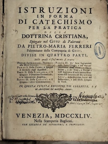 Istruzioni in forma di Catechismo per la pratica della Dottrina Cristiana.