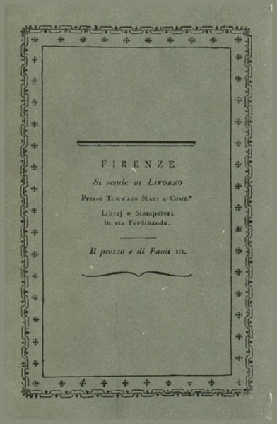 Itinerario italiano che contiene la descrizione dei viaggi per le strade più frequentate alle principali città d'Italia, con carte geografiche; Si è indicato la distanza in poste, in miglia, in ore e minuti; vi si sono notati gli oggetti più interessanti di belle arti, l'antiquaria, la storia naturale e le principali produzioni e manifatture dei diversi luoghi; Si sono accennati gli alberghi ec. e si premettono alcune tavole esprimenti il prezzo dei cavalli di posta, il rapporto della moneta, quello delle misure itinerarie ed altre utili osservazioni.