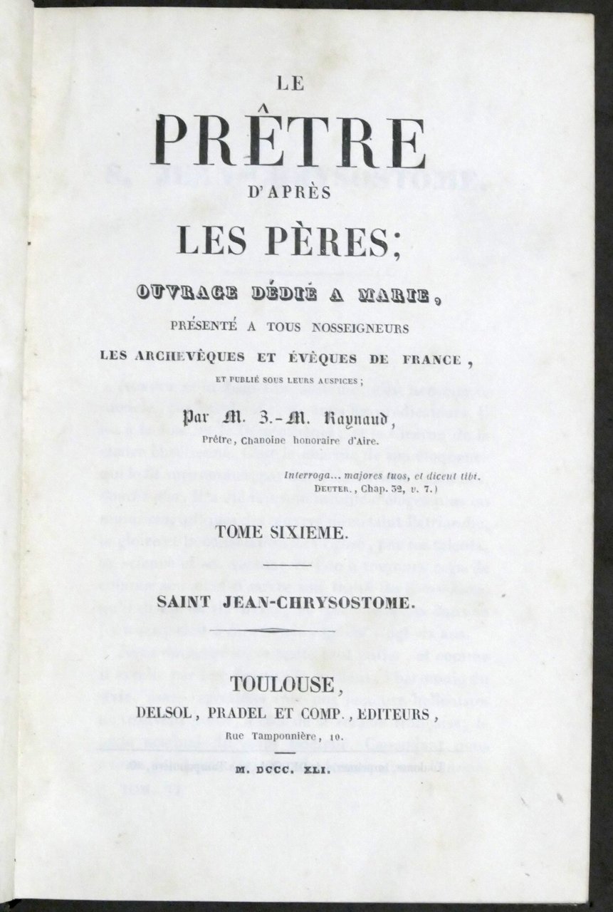 J.- M. Raynaud - Le pretre d'apres les pères - 6 volumi - ed. 1839 / 1841