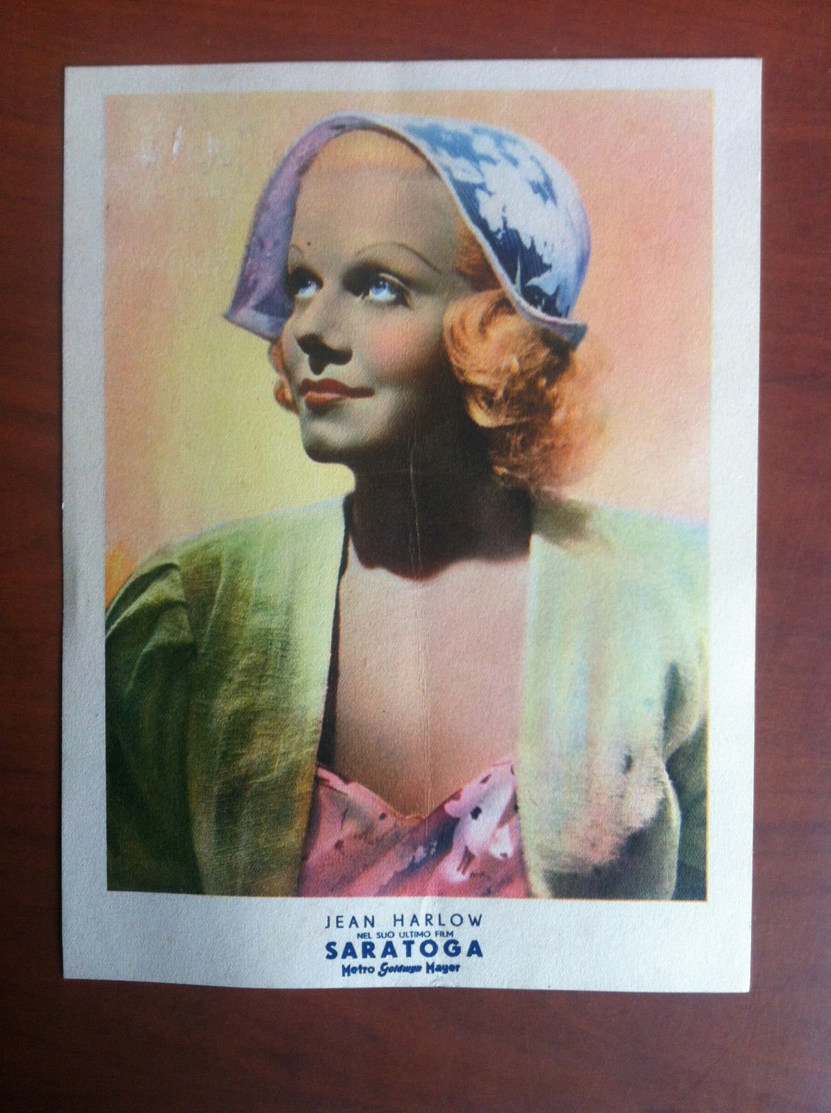 JEAN HARLOWnel suo ultimo film SARATOGA Metro Goldwyn Mayerritratto con biografiaformato 15x20 cmin ottime condizioni (gr 6)E12819