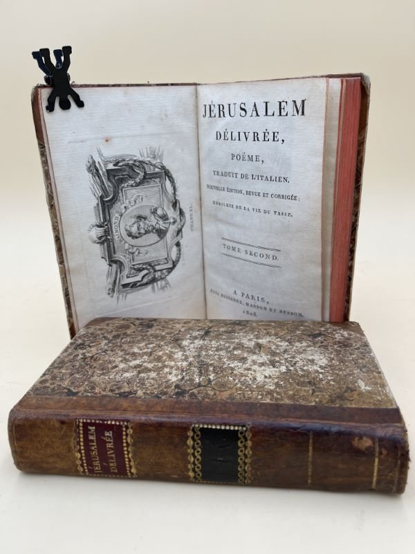 Chez Bossange 1808 Paris, Chez Bossange, 1808. 2 volumes in-12 reliés demi-basane à petits coins. Dos lisses. Pièces de titre et de tomaison. Un feuillet blanc, faux titre, frontispice, titre, XCIX + 515 + 506 pages. 19 gravures hors texte et vignettes. Coins légèrement émoussés, mors faible au bas du dos du tome 1.