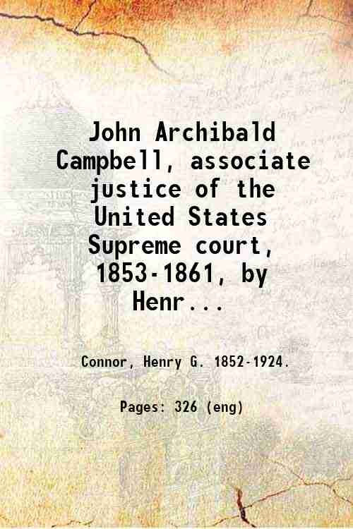 John Archibald Campbell, associate justice of the United States Supreme court, 1853-1861, by Henry G. Conner. 1920 | Rare and modern books | Connor, Henry G.