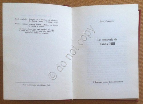John Cleland - Le memorie di Fanny Hill - Foro Editrice 1966 | Rare and modern books |