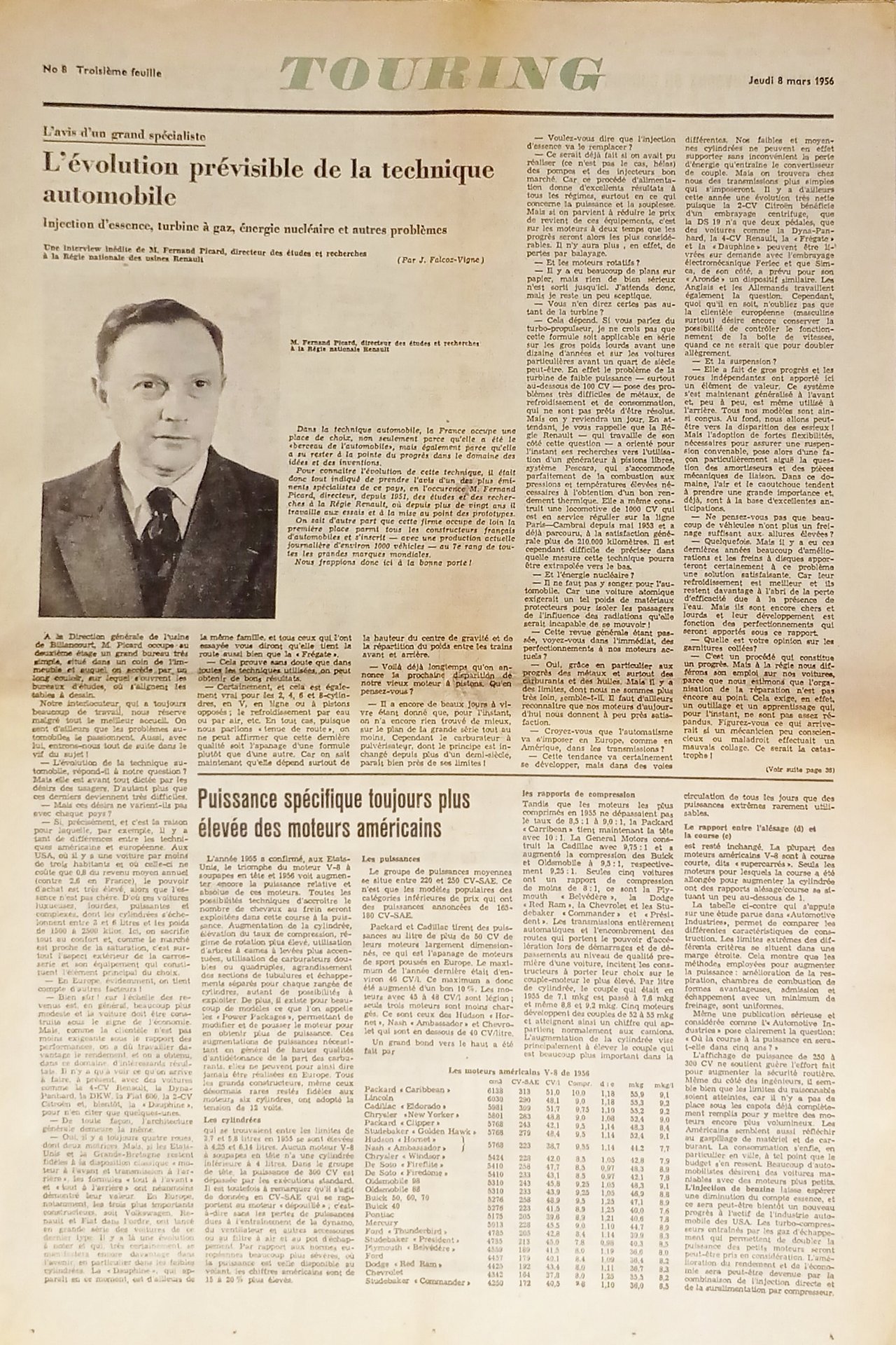 Journal - Touring N. 8 - 1956 L'évolution prévisible de la technique automobile