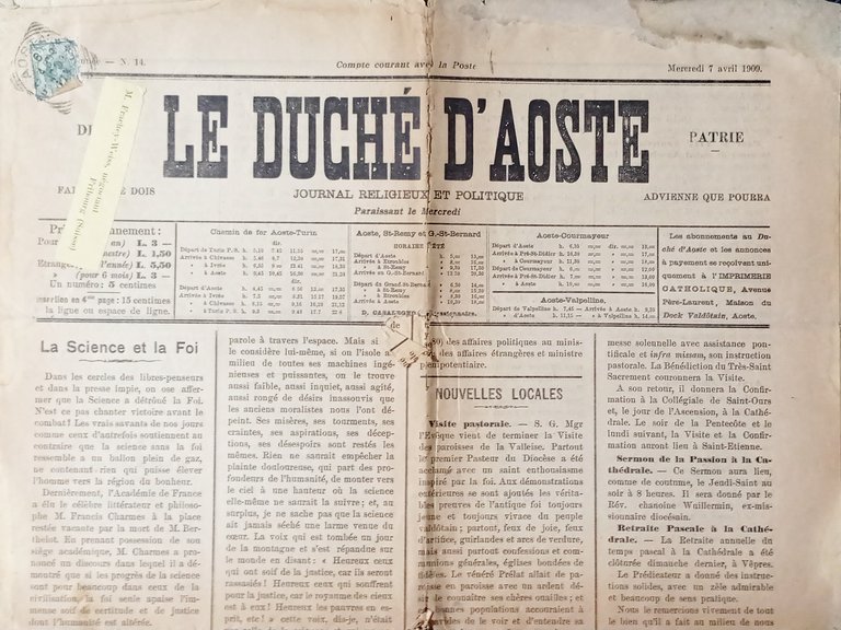 Journal Religieux et Politique - Le Duchè d'Aoste N. 14 - Science et Foi - 1909
