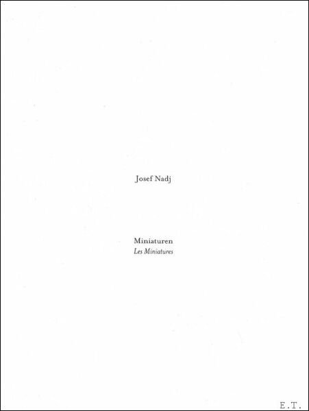 map losbladig compleet met 54 miniatuurtekeningen. ISBN 9789077207161. In parallel to his show Les Philosophes (The Philosophers), inspired by the life and work of Bruno Schulz, Josef Nadj drew these Miniatures. 55 India ink drawings that can each be seen as a snapshot, a still frame. All of Josef Nadj?s drawings are in a 6 8 cm format, probably to emulate the original format on which he drew his first sketches: rolling paper. Easily transportable in a pocket, these drawings could be Josef Nadj?s personal diary, written with ink and quill. They display the minutiae, constance and composition that are central elements in his choreographies. The drawings are small windows opened onto an an imagination, that of Josef Nadj, that takes us from one world to another, in which no rest can be had, where every being, human or animal, can keep hidden, under a table, onto himself or behind a wall, another reality In deze exclusieve uitgave op 350 exemplaren publiceert Stockmans 54 miniatuurtekeningen van Jozef Nadj op origineel formaat (6 x 8 cm). Deze werkjes werden gecre?erd met de dunst mogelijke pen en Chinese inkt in 2000-2002. De zeer intieme miniatuurtekeningen weerspiegelen sc?nes uit het universum van Josef Nadj, steeds begrensd in een kader of een venster, net zoals het universum - van de choreograaf Jozef Nadj - zich op het podium binnen bepaalde grenzen afspeelt.nnDans cette ?dition limit?e et exclusive en 350 copies, Stockmans publie 54 miniatures de Jozef Nadj sur format original (6 x 8 cm). Cr?s en 2000-2002, et r?alis's l'encre de Chine, ces dessins pourraient faire penser au journal intime de Jozef Nadj, dans lequel il crirait la plume. De petites fen'tres ouvertes sur un imaginaire qui nous transporte d'un univers ? un autre, comparable l'univers cr? par Jozef Nadj