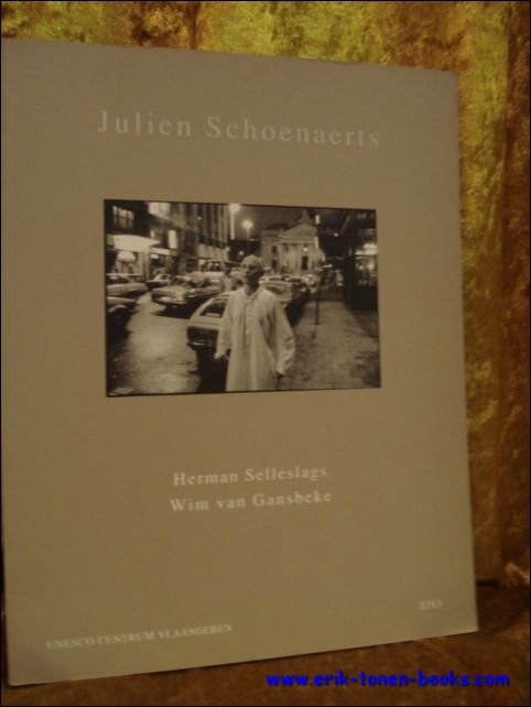 softcover , foto - geillustreerde kartonomslag, 195 x 255mm., 73pp., 33 z/w foto's. ISBN 9789064453229. Unesco Cahier 4. Dit is geen biografie, laat staan een fotobiografie van Julien Schoenaerts. Een liefdesverklaring zou niet misstaan, al kan dat menigeen mishagen. Toegestaan is wat bevalt. Voor de fotograaf was en is Julien Schoenaerts een levenslang thema, voor de schrijver een decennialange opeenvolging van blijde en onvoorziene weken. Food of love van een fool for love. De fotograaf en de schrijver werden door de uitgever verzocht samen een fotoboek met bijschriften te maken. De schrijver wilde geen beschrijvende noch documentaire commentaren maar door de foto's vanuit hun onderwerp (of hun voorwerp) op gang gebrachte bespiegelingen. De fotograaf opteerde vanzelfsprekend voor foto's die hem na aan het hart liggen en wilde er niet meer dan drieendertig in het boek. Over de mogelijke betekenis van dat aantal mag de kijkende lezer zich het hoofd breken. Ofschoon de foto's een geschiedenis vertellen, hebben ze geen chronologie, ze staan althans niet in een als dusdanig te definieren volgorde. Ze hebben de chronologie van de herinnering en dus van gelijktijdigheid. De keuze van de foto's is arbitrair en derhalve niet te verantwoorden. Dat doen we dan ook niet, we delen de feiten mee. Dit boek is Julien Schoenaerts' vertelling en het is ons verhaal. Voor wie tegen beter weten in toch het puntje bij het paaltje wil zien, werden de foto's achteraan uitvoerig gedocumenteerd. .