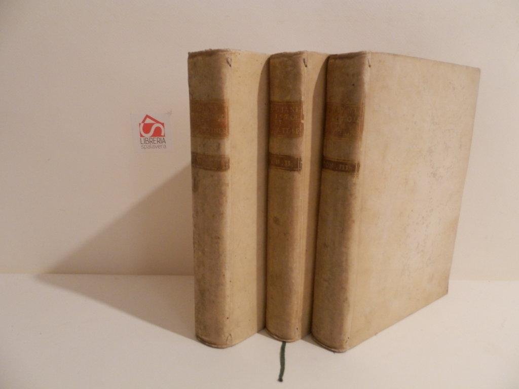 3 volumi su 4, 4°, 26 cm, pp. (8), 516; (20), LXXII, 415, (1); 12, 474, (2); rilegata coeva in piena pergamena rigida, titolo in oro al dorso, segnalibro in stoffa. Rari segni di tarlo ai frontespizi, lontano dal testo. Giulio Pogiani fu un umanista nato a Suna nel 1522 morto a Milano nel 1568, segretario di Carlo Borromeo redasse dei testi del Concilio di Trento. Le lettere vertono su questioni di morale, di diplomazia ecclesiastica e sul ruolo di Vescovi e Cardinali. Esemplare nell'assieme molto buono. *** TUTTI I NOSTRI LIBRI SONO VISIBILI PREVIO CONTATTO MAIL O TELEFONO NELLA NUOVA SEDE DI MILANO: LIBRERIA COSMOPOLIS, VIA JOMMELLI, 22. ***